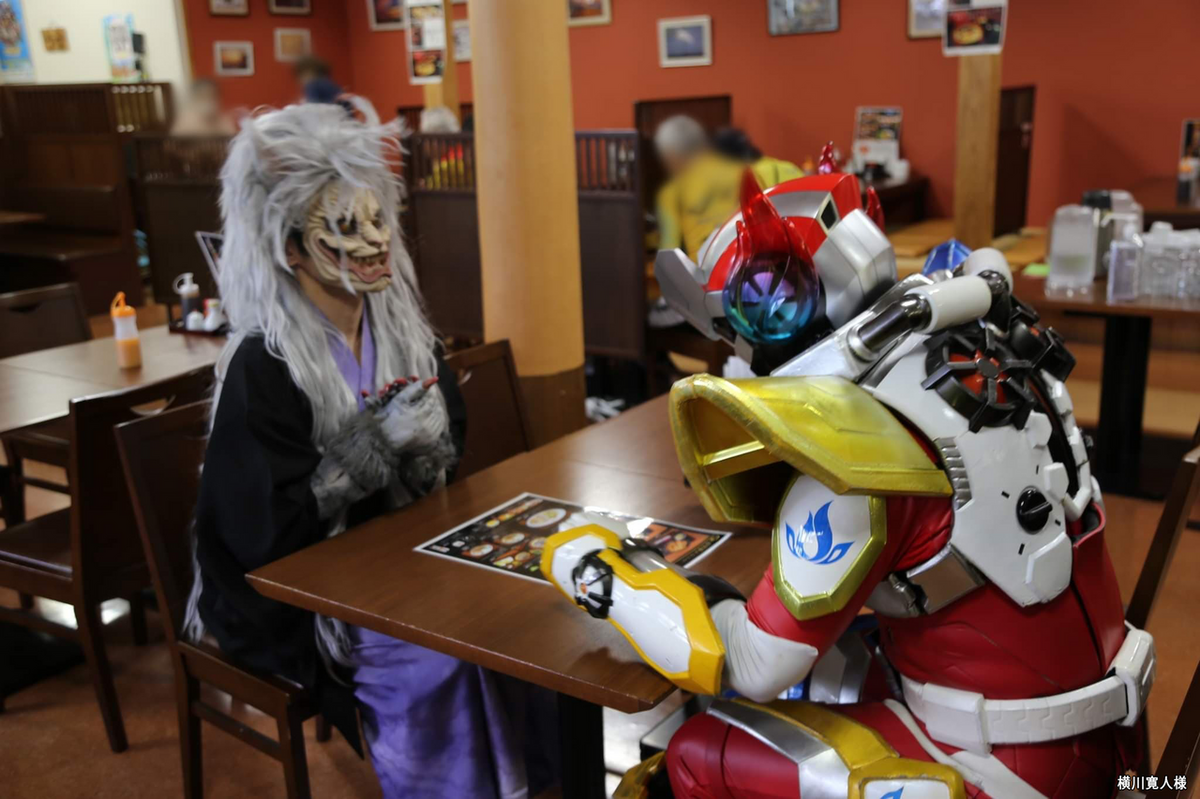 「がんばる強火のヤマシロンと化け猫さんとで、さと山店内のパトロールを行いました。」